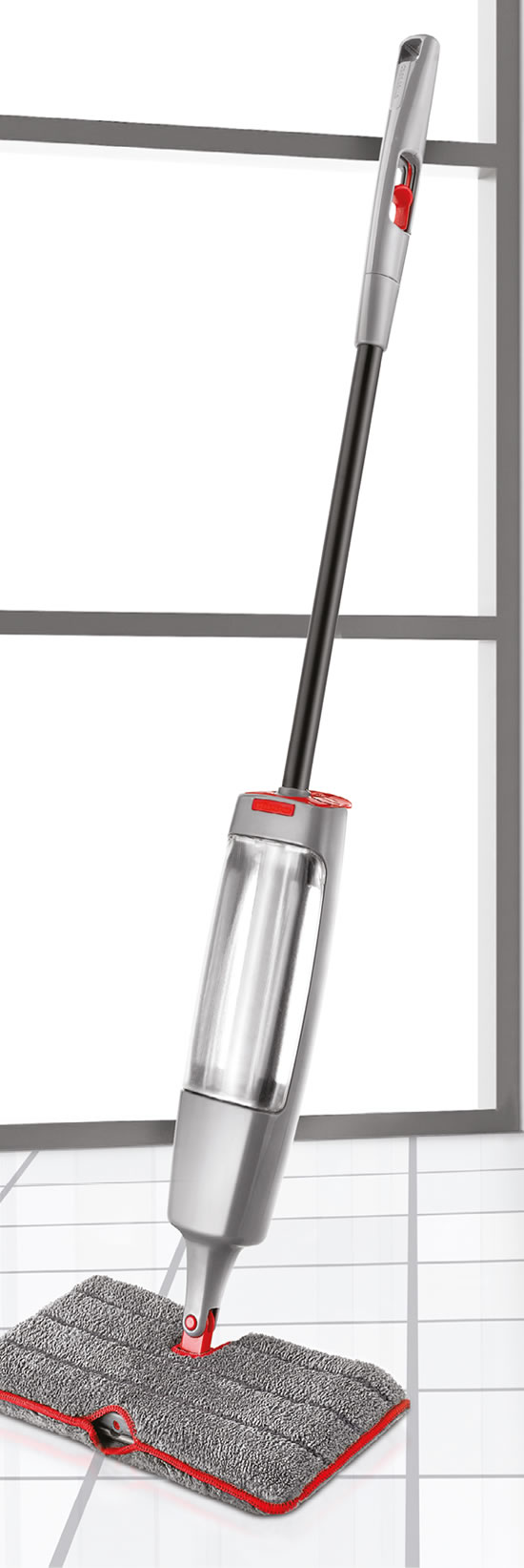 Lo Spray Mop è un prodotto innovativo che sostituisce l'utilizzo del secchio e del panno. E' dotato di un contenitore che può essere riempito con acqua o con una soluzione d'acqua e detergente; attraverso una valvola di spruzzo consente di bagnare la superficie lavarla con un lato del panno ed asciugarla con l'altro. Il contenitore e il panno sono ricambiabili e possono essere dedicati a vari ambienti (ad esempio un panno per la cucina e un panno per il bagno) Il panno è di microfibra e può essere lavato in lavatrice.